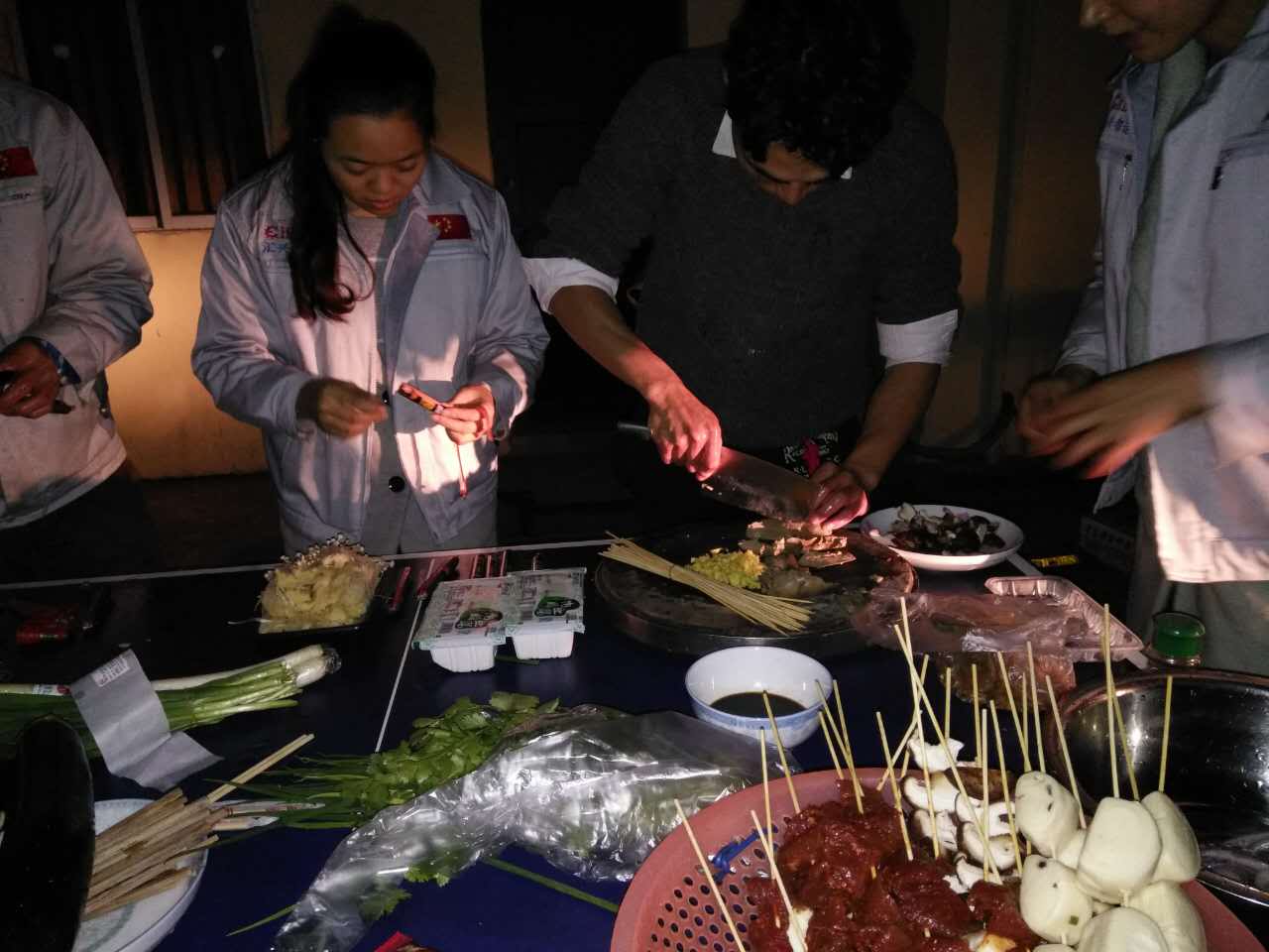 大家默契十足、分工合作,一個洗菜一個切菜、一個燒烤一個添加調料