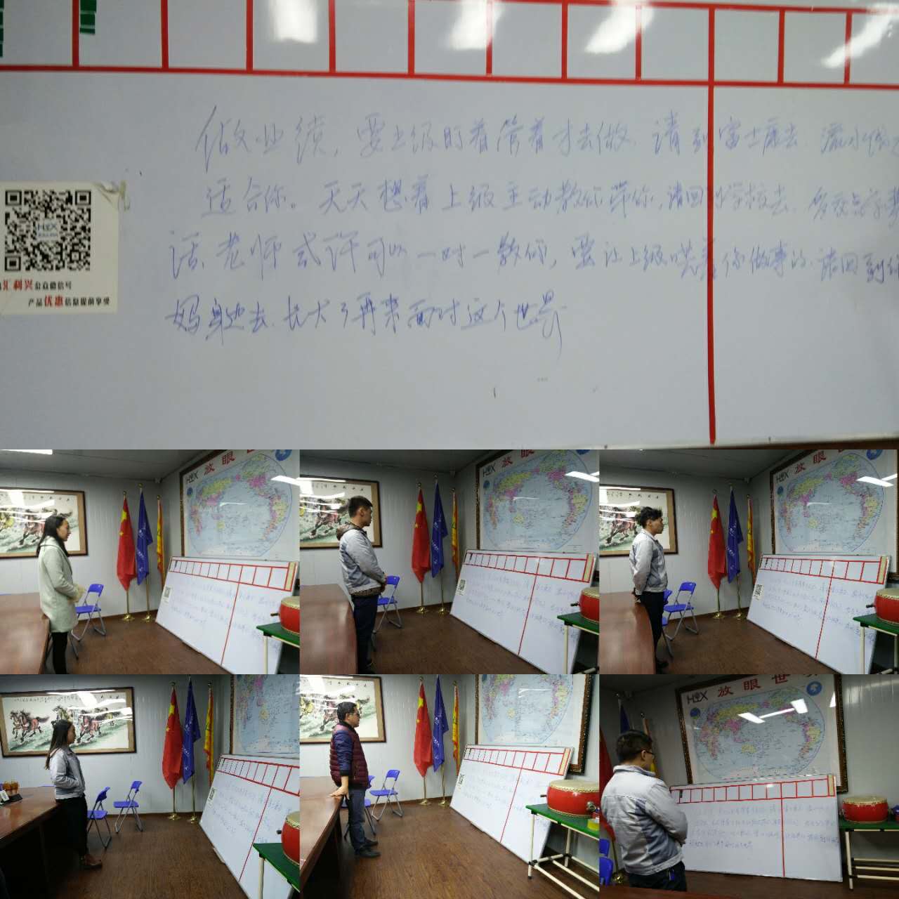 會(huì)上,主要以二個(gè)游戲?yàn)橹鳎謩e是互助闖關(guān)、警言宣讀;其中互助闖關(guān)是兩人為一組合,分別是三個(gè)小組(A組:蒲曾紅、石樂(lè)歡,B組:張國(guó)桃、陳吉坤,C組:曾濤、鄧筵暉),游戲規(guī)則:一個(gè)人為戴眼罩的搭檔指引路線而且不能觸碰到路線的障礙反之淘汰且兩人互助進(jìn)行,用時(shí)最少的組獲勝且獲得相應(yīng)的獎(jiǎng)勵(lì)。經(jīng)過(guò)幾番戰(zhàn)斗,ABC三組成員的用時(shí)終于知曉(A組:317.5分、B組:232.1分、C組:269.8分)在游戲中ABC三組成員,彼此信任、相互攙扶共同完成心目中的目標(biāo)且打敗所謂的障礙并取得勝利(最終B組獲勝)。然在此次游戲中最主要目的是考驗(yàn)隊(duì)友間合作度、彼此的信任度。其二警言宣讀,銷(xiāo)售部全體人員單個(gè)大聲宣讀。(組圖)