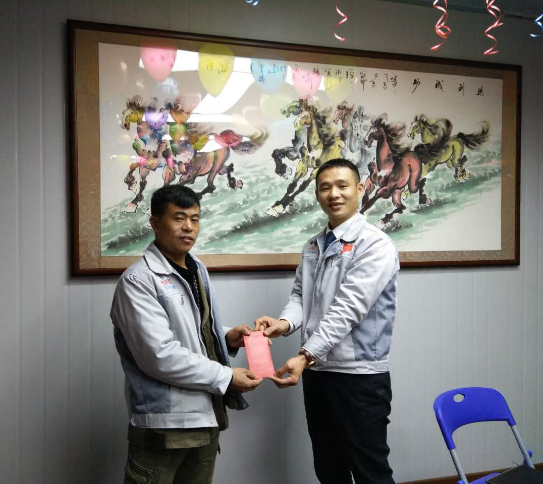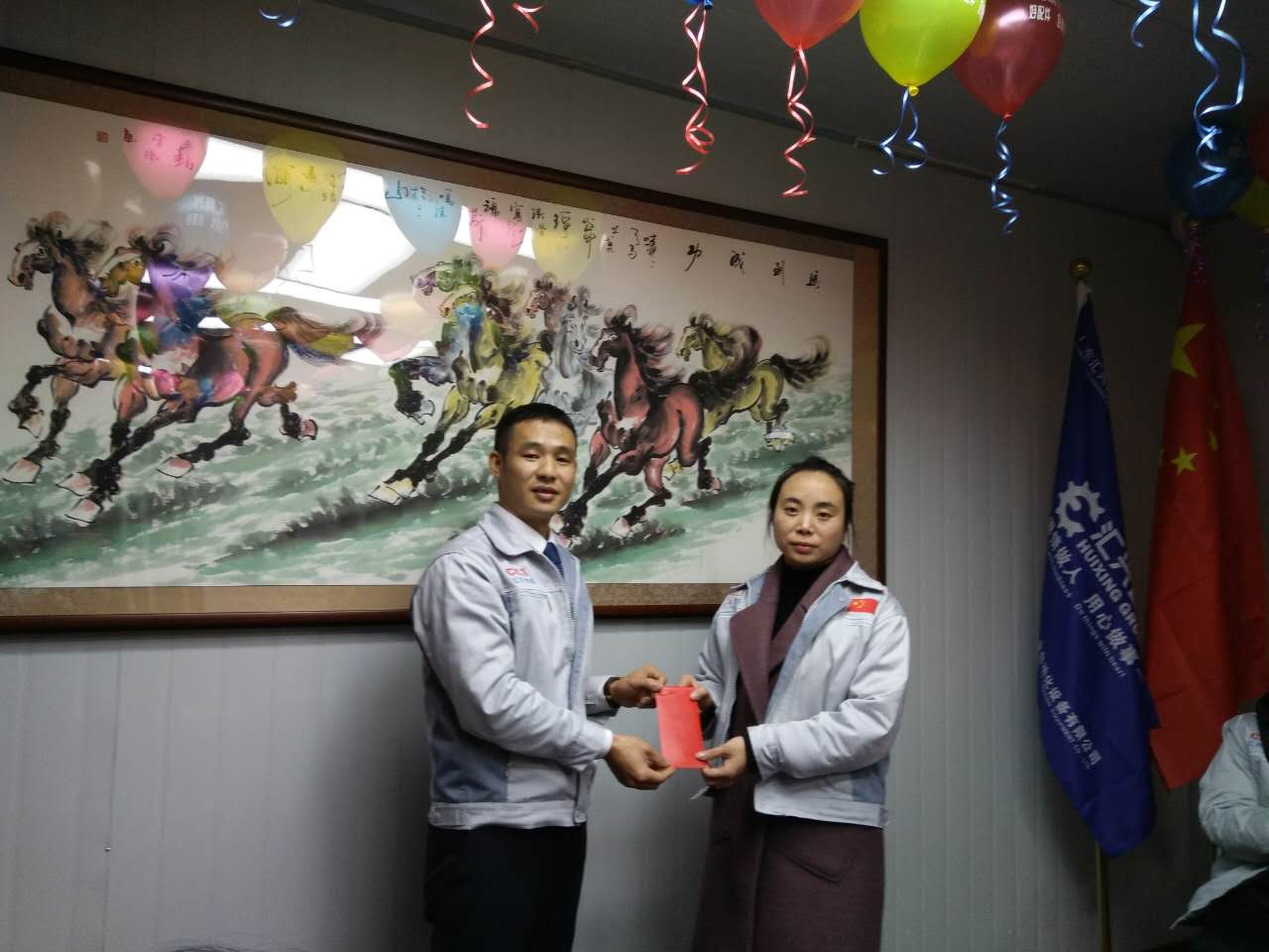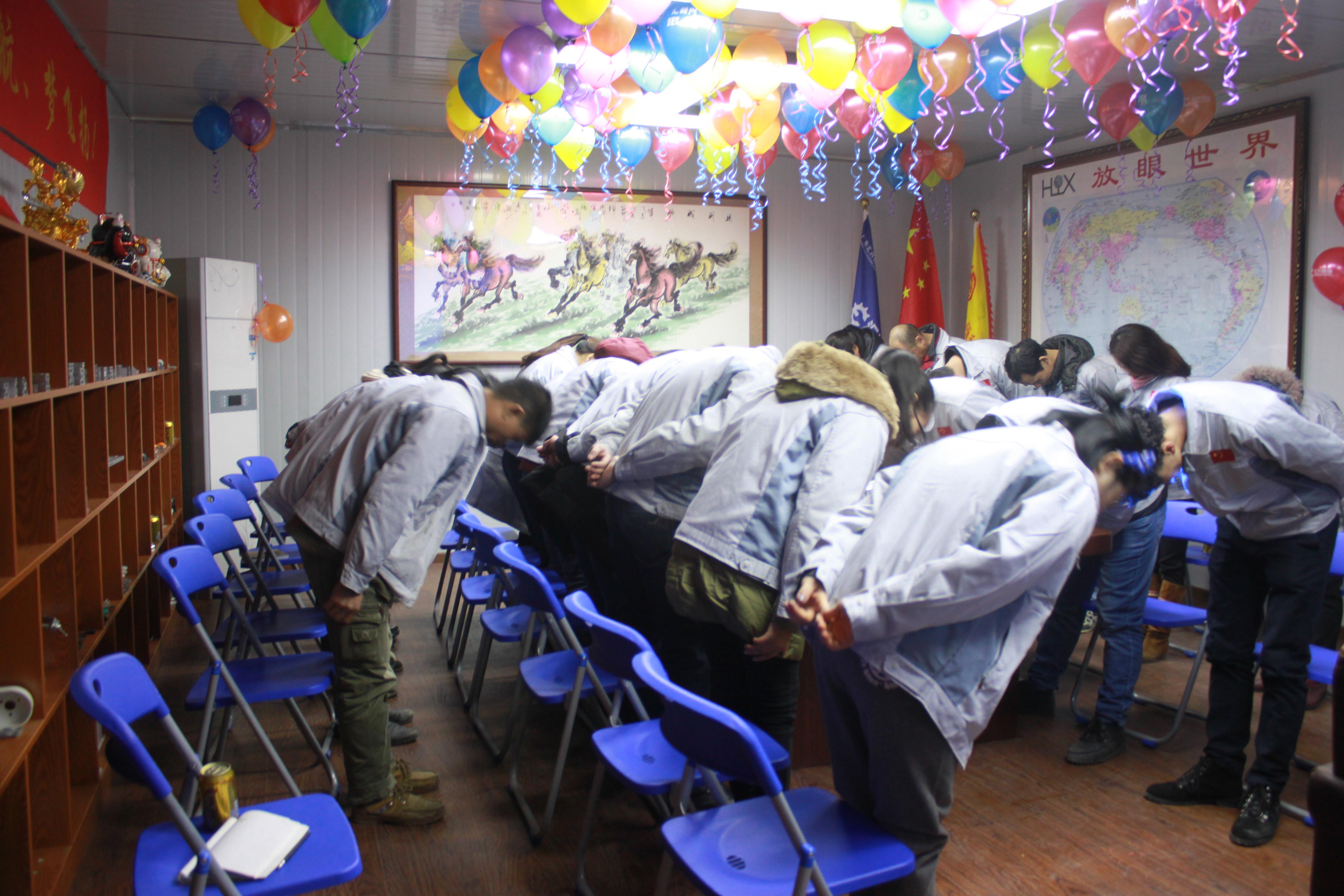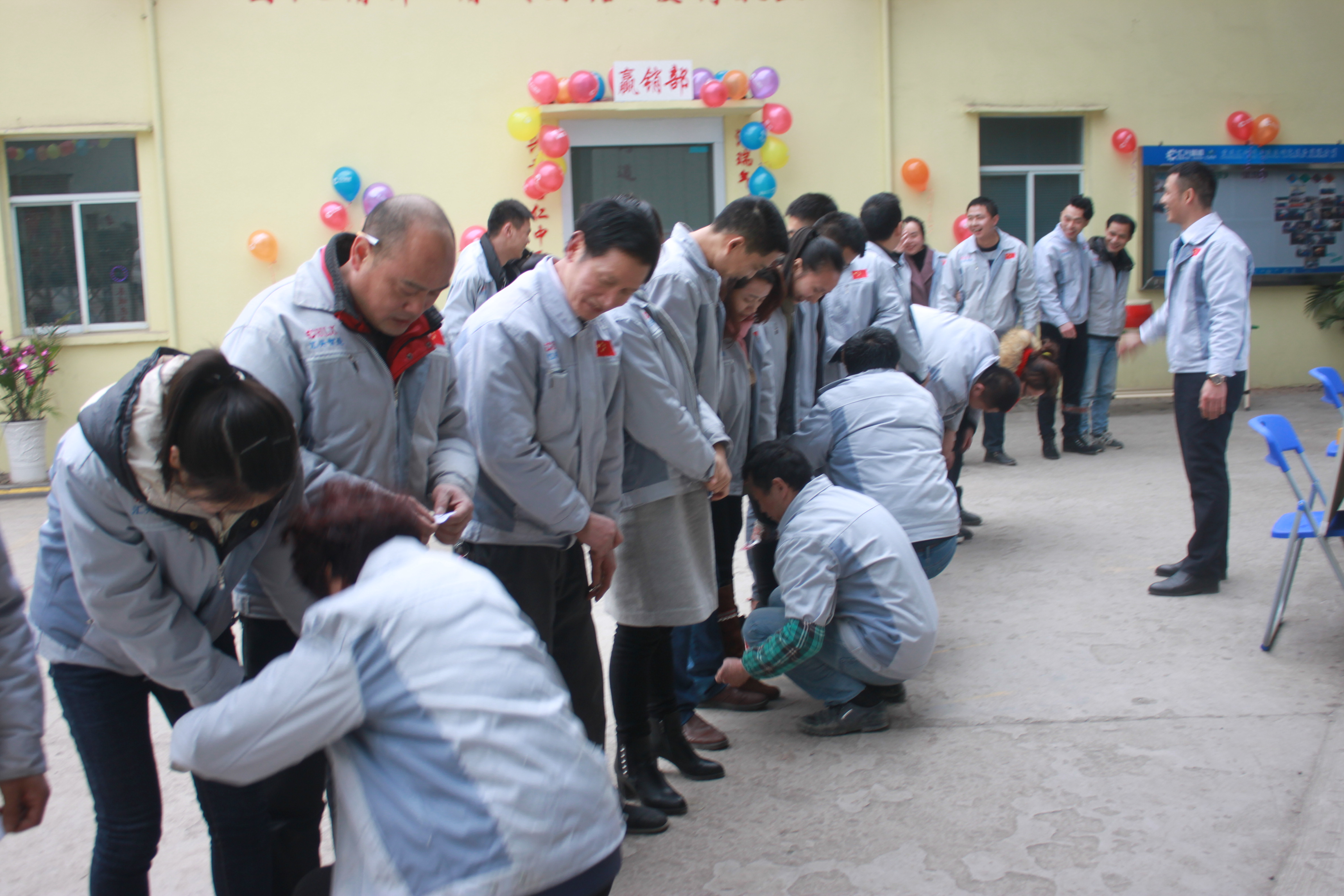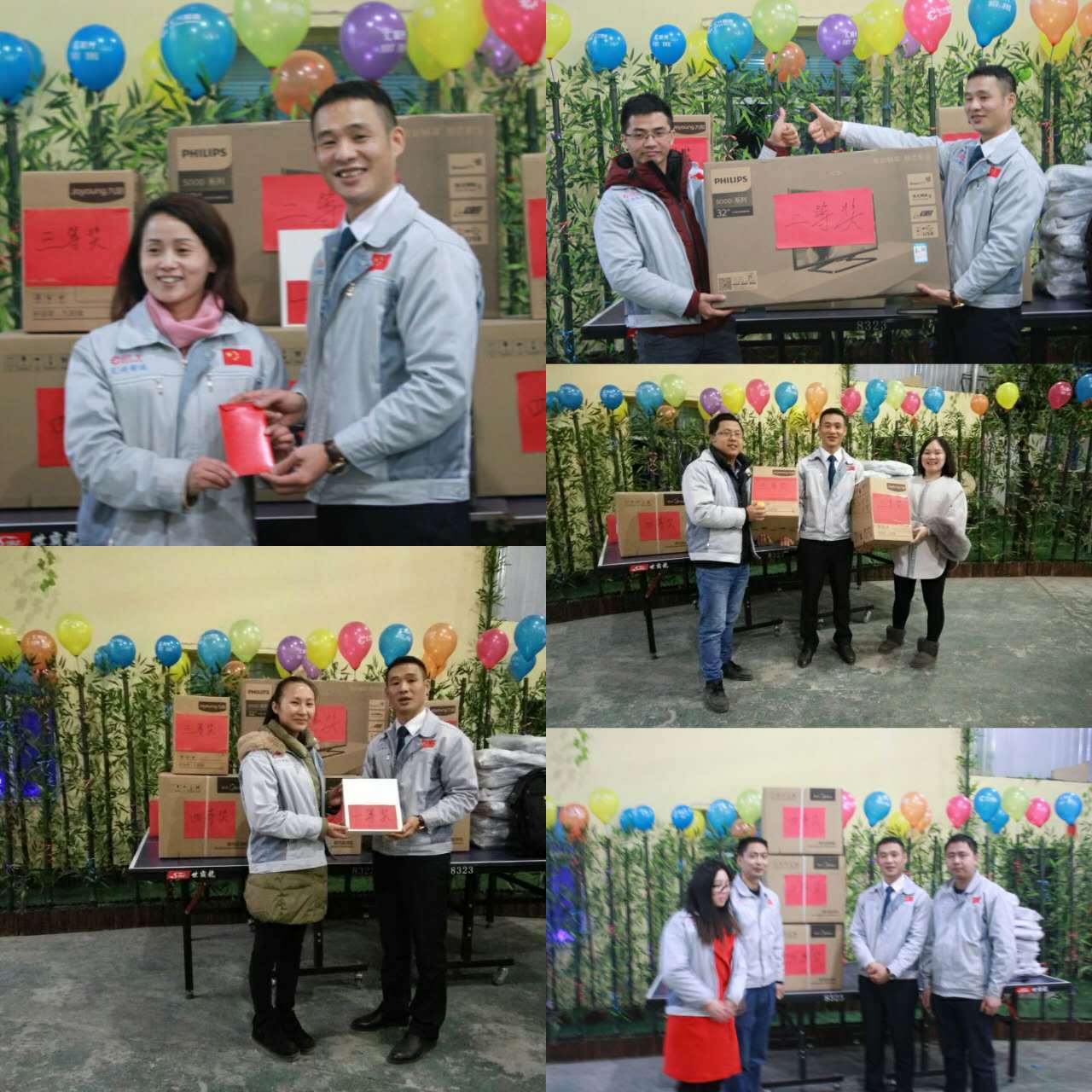 (眾人一條心)游戲準(zhǔn)備中,裁判們?yōu)檫x手們系上同心交織的紐帶 匯利興女戰(zhàn)士敲擊士鼓,士氣比武器更重要 會議召開前對企業(yè)三道(人道、孝道、商道)行三鞠躬 年度盛會由主持人劉園園上臺正式拉開序幕,會議前我們一起回眸2016年工作縮影,回眸了與匯利興大家庭的交集。 會議上,胡總經(jīng)理表示:2017年新起點的一系列規(guī)章制度、員工薪酬福利制度、員工職位考核制度,回首了2016年匯利興的成長與發(fā)展,3月14日公司搬址、傳祺戰(zhàn)車加入、倉儲及系統(tǒng)完善,2017年展望與目標(biāo)。同時表示感謝大家在2016年中的包容與支持同時也相信大家在2017年能一起攜手完成我們的目標(biāo)及挑戰(zhàn)。此后各部門代表發(fā)言總結(jié)2016年展望及2017年每月業(yè)績目標(biāo)。 匯利興全體戰(zhàn)士一起回眸2016年與匯利興大家庭的交集 隨著年會的氣氛越來越濃厚,接下來由胡總經(jīng)理一一頒發(fā)獎金及揭曉年會大獎獲者。獎金頒發(fā):最佳付出獎、最佳責(zé)任獎分別是劉元平與石樂歡戰(zhàn)士,在此感謝兩位家人的奉獻(xiàn)與付出。 在你們愛家的同時匯利興這個家會更加愛你們。 胡偉路總經(jīng)理與“最佳責(zé)任獎”榮獲者石樂歡同框合影 胡偉路總經(jīng)理與“最佳付出獎”榮獲者劉元平同框合影 年會大獎揭曉,胡總經(jīng)理一一揭曉大獎獲者,此次大獎由26個英文字母之一相繼而出,獲獎組圖以下: 胡偉路總經(jīng)理與年度盛會大獎獲得者合影圖(特等獎、一等獎、二等獎、三等獎、四等獎) 年度盛典活動逐漸接近尾聲,活動以“畫鼻子”游戲拉開帷幕。即使看不見光明,只要心中有信仰、信念那也將是一個通往前方的航燈。 匯利興大家庭年會團(tuán)圓飯圖貌 隨著年飯的結(jié)束,2016年盛會圓滿結(jié)束。回首過去,放眼未來,2016年已逝去的,我們不再留戀,2017年的到來我們?nèi)ビ樱灰驗樵谛碌囊荒暧形覀兊哪繕?biāo)及夢想我們要一同去創(chuàng)造去實現(xiàn)它,實現(xiàn)中國智能裝備全產(chǎn)業(yè)鏈集成智造標(biāo)桿,繼續(xù)引領(lǐng)行業(yè)的發(fā)展。同時在此感恩所有對匯利興關(guān)懷及支持過的您們,正是因為有了您們的支持才得以讓匯利興茁壯成長,才能讓匯利興在行業(yè)道路上越走越穩(wěn)。感恩您們......