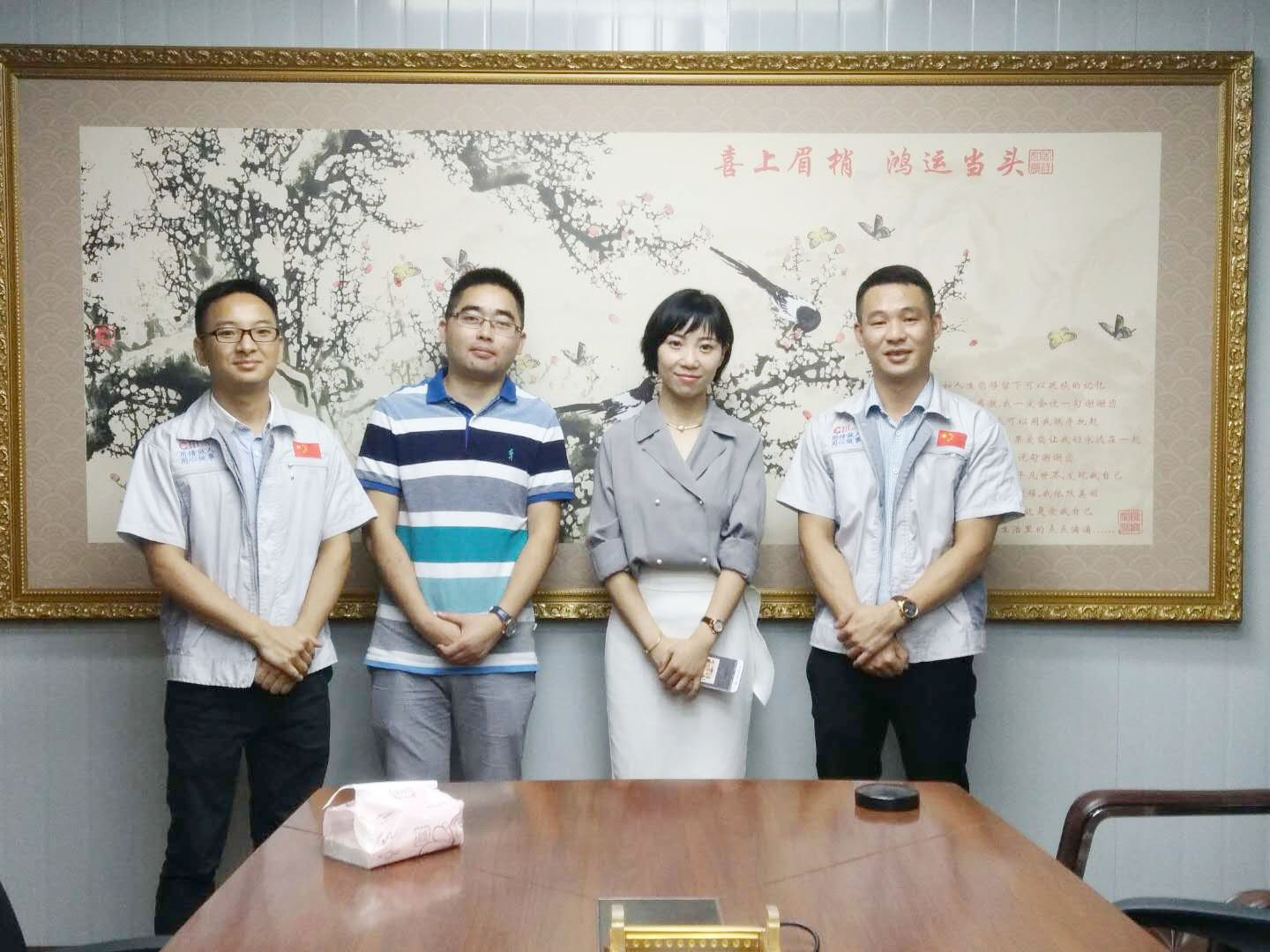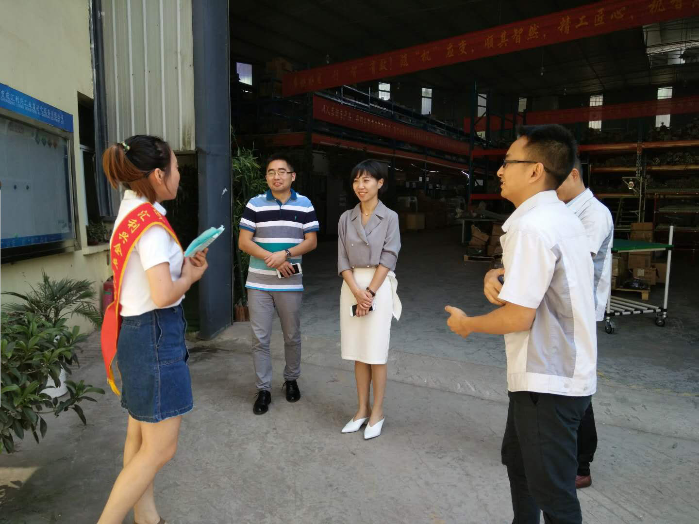 6月5日,蘇州某供應(yīng)鏈管理有限公司制造副總?cè)~蓮女士、四川某物流設(shè)備有限公司技術(shù)席禮江先生同時(shí)蒞臨匯利興重慶公司。匯利興重慶公司胡偉路總經(jīng)理一行熱情接待了兩方來客。 胡偉路總經(jīng)理一行與客人們合影圖 竹破四方遙來客,舉杯不敗古來人。兩方客人與胡總經(jīng)理一同相談甚歡,受邀參觀了解匯利興企業(yè)文化及面貌,由文化大使小石,向客人們一一解說匯利興企業(yè)文化,帶領(lǐng)客人參觀了解匯利興廠貌(型材加工區(qū)、配件倉儲(chǔ)區(qū));用客人的一句話總結(jié)匯利興,“種類多、設(shè)備全、加工快、文化好、省成本”,并一度稱贊匯利興濃厚的文化底蘊(yùn)及過硬的行業(yè)技術(shù),表示此次來訪,受益匪淺。至此,邀請(qǐng)客人在“喜上眉梢、鴻運(yùn)當(dāng)頭”錦上添花,寓意友誼長存、攜手共進(jìn)。 文化大使小石向客人介紹公司文化圖 匯利興,作為掛牌企業(yè),自建18畝工業(yè)園、具有18年的行業(yè)老資歷、56項(xiàng)自主新專利,并與各大品牌企業(yè)相繼交流合作,業(yè)界擁有高贊譽(yù)的品牌口碑,不僅吸引了很多國內(nèi)客戶,還吸引了不少國外客戶。在此,感謝每一位客人對(duì)匯利興的認(rèn)可及鼓勵(lì),謝謝!匯利興定不負(fù)眾望!披荊斬棘、向前攀登,為配件行業(yè)再創(chuàng)奇跡!