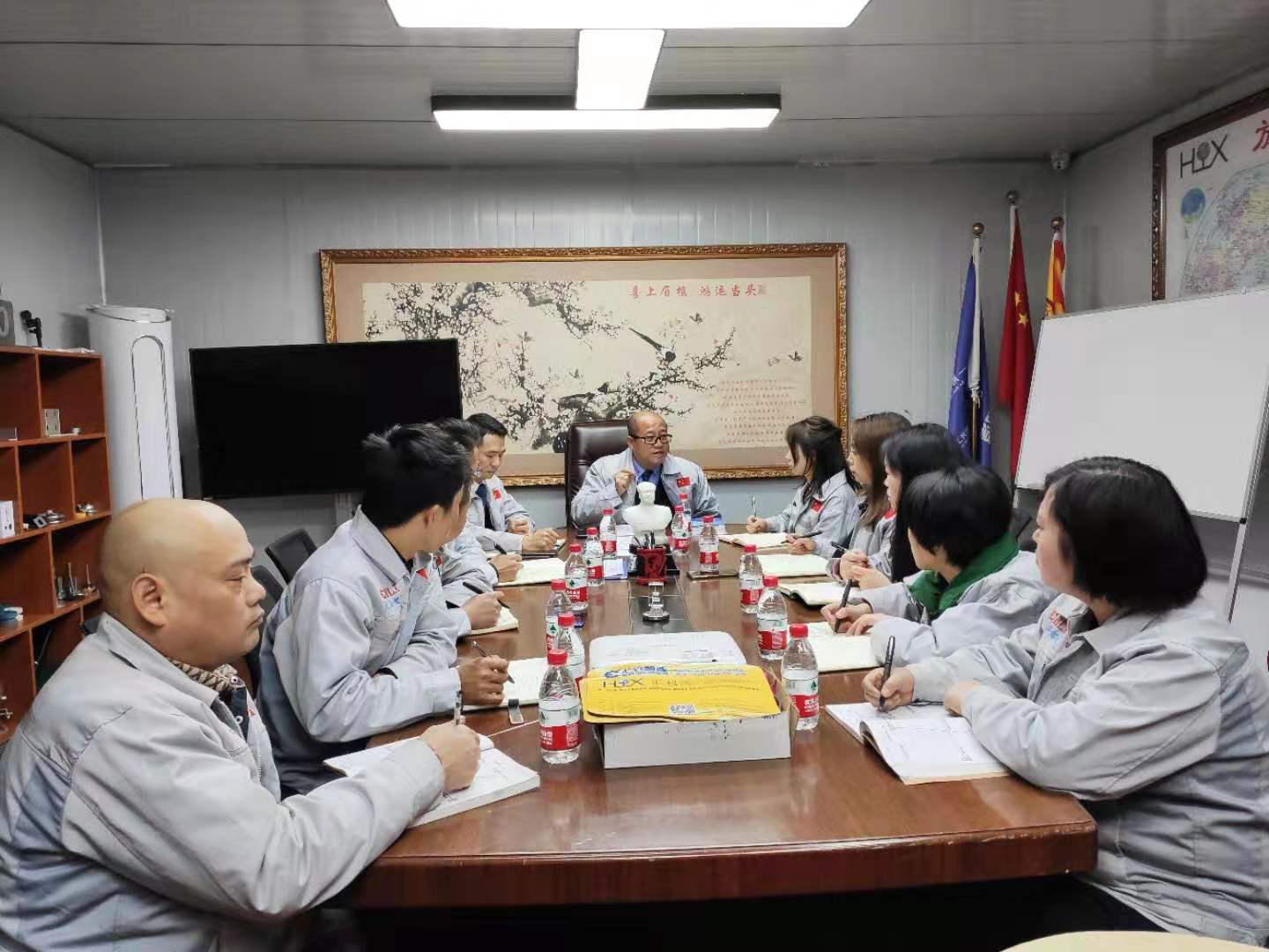 12月9日,公司董事長鐘輝先生蒞臨重慶子公司考察并指導工作,于16點40分在會議室召開主管會議。 會議前,例行匯利興企業(yè)文化,兩位核心高管敲響士氣鼓,士氣比武器更重要。